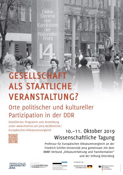Mit lokalen Herrschaftsverhältnissen in der DDR beschäftigt sich eine Tagung an der Universität Jena, die ich mit vorbereitet habe. Sie findet am 10. und 11. Oktober im Großen Rosensaal statt.